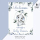 Welcome guests to a baby shower with this cute personalised poster print featuring a sweet watercolor baby elephant holding a stuffed bunny in blue tones accented with sage green and dusty blue greenery and eucalyptus leaves and blue flowers with calligraphy script typography. OPTIONS: The sample is shown in a 18x24" size on Value Paper (Matte)--other sizes and paper quality, Digital Download file for local printing or to transfer the design to another product like a foam board, banner, tapestry, etc. are available on the ordering page. RESIZING TIP: Use the CHOOSE YOUR SIZE section below "Standard Sizes" if uneven borders occur and click the UNLOCK icon first (looks like a chain link) before entering the new width and height dimensions. Adjust the new dimensions proportionately by adding or subtracting approximately the same number of inches on both from the original size (you may have to adjust incrementally to achieve equal outside borders). ASSISTANCE: For help with design modification/personalisation, colour change, transferring the design to another product or if you would like coordinating items, contact the designer BEFORE ORDERING via the Zazzle Chat MESSAGE tab or email at makeitaboutyoustore@gmail.com.