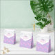 Cute baby shower favour box, featuring cute elephant blowing heart shaped bubbles pattern. Pretty pink, purple and white baby girl shower elephant design. Personalise with your baby shower honours name. Uniquely illustrated and designed by Sarah Trett.