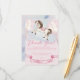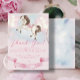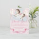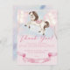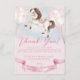 Horse-themed Thank you card featuring illustration of a lovely baby pony and Watercolor fairytale gold stars with pastel colours balloons and pink ribbon for ending celebration!