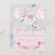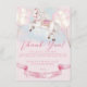 Horse-themed Thank you card featuring illustration of a lovely baby pony and Watercolor fairytale gold stars with pastel colours balloons and pink ribbon for ending celebration!