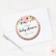 Baby Shower Flower Crown Glitter Pink Rose Gold Classic Round Sticker