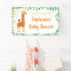 This baby shower welcome banner features a cute whimsical giraffe and bird design. Personalise it with your text. Other matching baby shower items are also available. Please view the collection page or visit our store to view the full range.