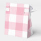 Thank your guests for coming to your baby shower with this cute favour box featuring a sweet girl teddy bear wearing a pink bow. Background is a pink and white buffalo check pattern. Text on front reads "Thank you!"