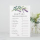 Baby Shower Guess the Price Game. This design features a watercolor illustration of purple lavender flowers and eucalyptus foliage. On the top of the card - greenish effect confetti. This game contains 10 must have baby items. Try to guess the cost of each item.