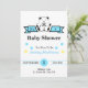 Teddy bear with banner on white background baby shower invitation for boy. The card is completely customisable, you can edit text, and colours on both text and design, even the background colour can be customised. It features simple, contemporary lettering and circle accents for a fun, casual get together rejoicing in that special moment to be. If you need help customising this card contact designer at ArtByLiz@gmx.com and it will be customised for you at no extra charge.