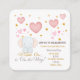 This is a charming baby shower invitation featuring a cute watercolor elephant surrounded by pink hearts and gold stars, announcing that "A Little One is On the Way!"