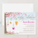A darling customisable baby shower invitation featuring hot pink and orange baby clothes hanging from a tree with beautiful pink and white flowers.