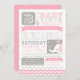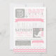 A cute baby shower invitation for a baby girl. Cute little elephant and bird, with chevron stripes, circus poster theme and cute typography!