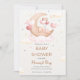 baby shower invitation, cute,rabbit, crescent moon, pink, balloon, modern baby shower, elegant baby shower,