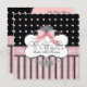 This Baby Shower Invitation features elegant French copperplate swirls, pink and green dots in the background, a ruffled ribbon and a beautiful hand painted pink bow. All made from original artwork by Audrey Jeanne Roberts. The result is a beautifully contemporary Baby ensemble. On the reverse side there is the same dot pattern and a bracket revealing a place for your baby's photo. You can easily add your own picture or change the message. YOU MIGHT ALSO ENJOY: