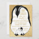 Baby Shower Invitation Gold Baby & Mummy Penguins