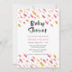 Invite your guests to your baby shower with this fun pink and orange abstract paint Baby Shower invitation with pink and orange paint dashes and a matching patterned background.