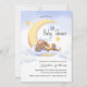 Baby shower invitation decorated with an adorable bunny sleeping on the moon.