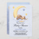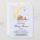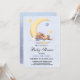 Baby shower invitation decorated with an adorable bunny sleeping on the moon.