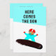 Fun winter baby shower invitations featuring cute little baby snowboarder.