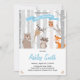 ♥ A cute and fun baby shower invite! All handdrawn! Woodland baby shower theme with blue for a boy shower.