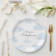 A nice paper board for a baby shower, with light blue clouds and gold-colored hairs.