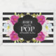 Make your own "She's About To Pop", boy or girl baby shower sparkling wine favours with these personalised label. Pretty DIY "she's ready to pop" sparkling wine labels are unique and add a touch of class to your baby shower. They feature watercolor flowers with black stripes and chalkboard background. The labels are slightly larger to cover most mini wine labels and fits perfectly on standard sized mini sparkling wine bottles. To see more designs like these visit www.zazzle.com/vginvites