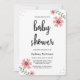 Chic and modern baby shower invitation with stylish typography and pretty floral elements.