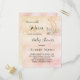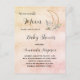For a modern boho style baby shower. A rose gold, blush pink rustic faux metallic looking background. Decorated with a moon, florals and eucalyptus greenery. Personalise and add a name and party details.