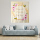 Elegant, fun, summer baby shower tapestry. Yellow, white background with a honeycomb pattern. With a faux gold geometric frame. Decorated with pink tropical florals flowers, hibiscus and happy bumble bees. With the text: Mummy to Bee and the name of the mum-to-be. Template for the name and a date. Can be used as wall decor for the baby shower or as a photo backdrop.