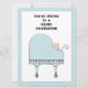 Creative music themed baby shower invites featuring baby boy in a blue baby grand piano shaped like a stroller.