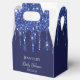 Elegant, classic, glamourous Baby Shower. A navy blue background colour. On the front and the back: Personalise and add a name, and a date. The name is written with a modern hand lettered style script. Decorated with blue faux glitter drips, paint dripping look.