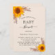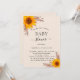 For a modern boho style baby shower. A blush rose gold background. Decorated with sunflowers, pampas grass. Personalise and add a name and party details.