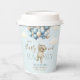 Add charm to your party drinks with these paper cups decorated with a cute bear holding balloons in blue and white. Ideal for a bear baby shower theme.