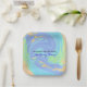 This paper plate design features a new baby celebration design with a colourful swirl of purple, peach, green, and blue. Fill in the personal information fields, remove text and/or click customise to select a typeface colour, size, and style your prefer.