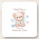 Celebrate the mum-to-be with a cute bear and butterflies personalised baby shower paper coaster. The front features the special event name along with the name of the mum-to-be as well as her monogram. Use the template to personalise.