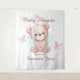 Consider this cute baby shower tapestry as part of your baby shower festivities. Makes a great backdrop. Features the special event name along with the name of the mum-to-be as well as her monogram. Bear & Butterflies design. Use the template to personalise.