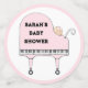 Creative piano themed baby shower decoration featuring pink baby grand piano shaped as a stroller and sweet baby girl. To personalise edit text.