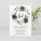 Shower the mum to be with a pink and navy floral-themed baby shower. The design features a "baby shower" in a hand-lettered typography design with watercolor pink floral arrangements at the top and bottom.
