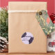 This baby shower sticker features purple painted flowers. The flowers display shades of purple and the entire design is placed against a light purple background. All text and the background colour can easily be customised.