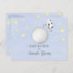 This design features a gender neutral cute whimsical script, QR code gift registry URL, with cow jumped over the moon, an elegant calligraphy script, a trendy stylish baby shower invitation, a blue and yellow stars moon, a classic traditional nursery rhythm, a budget friendly postcard template, a baby shower invitation postcard, with website online store web address