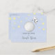 This design features a gender neutral cute whimsical script, QR code social media URL, and Facebook party page event page online with cow jumped over the moon, an elegant calligraphy script, a trendy stylish baby shower invitation, a blue and yellow stars moon, a classic traditional nursery rhythm, a budget friendly postcard template, a baby shower invitation postcard, with website online store web address