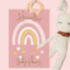 A simple colourful rainbow with hearts is the basis of this baby shower invitation.