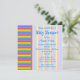 This custom baby shower invitation could be suitable for if the baby is going to be a boy or girl. A stripe pattern in rainbow colours, with pale stripes behind the writing. The text is in blue and can be personalised to create a custom invitation. A fun bright and colourful design.