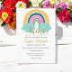 Baby Shower Rainbow Invitation with colourful rainbow design in yellow, blue and pink | Use personalise this template option to change the text | To change the text style and colour, use CUSTOMIZE FURTHER option