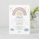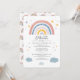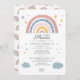 Create your cute baby invitations with this pretty and adorable rainbow boho watercolor invitation design in tan, yellow, and blue, featuring stars and clouds. The reverse side features a watercolor rainbow pattern on white background.