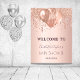 For an elegant Baby Shower. A rose gold gradient background. Decorated with rose gold, pink drips, paint dripping look, party streamers, balloons. Personalise and add names and a date.