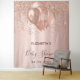 For an elegant Baby Shower. A rose gold faux metallic looking background. Decorated with rose gold, pink faux glitter drips, paint dripping look,glitter drops and balloons. Personalise and add the name and a date. Can be used as a welcome banner, wall decor for the baby shower or as a photo backdrop.