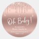 An elegant and luxurious sticker for your baby shower thank you cards and favour bags that features rose gold faux glitter dripping from the top and "Oh Baby!" in a stylish white script underneath against a rose gold background. You can easily personalise the mother-to-be's name and a thank you message.