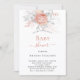 For a Baby shower celebrating a baby girl. A stylish white background. Decorated with rose gold and white florals, roses and faux silver foliage. Personalise and add a name and party details.