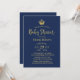 Baby Shower Royal Gold Crown Elegant Navy Blue Invitation