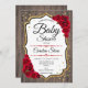 Baby Shower - Rustic Wood Red Gold Invitation