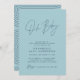 Baby shower script modern baby blue elegant party invitation design. Ideal contemporary baby shower party design. Part of a modern collection.