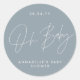 Baby shower script modern dusty blue elegant classic round sticker