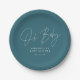 Baby shower script modern teal blue elegant paper plate